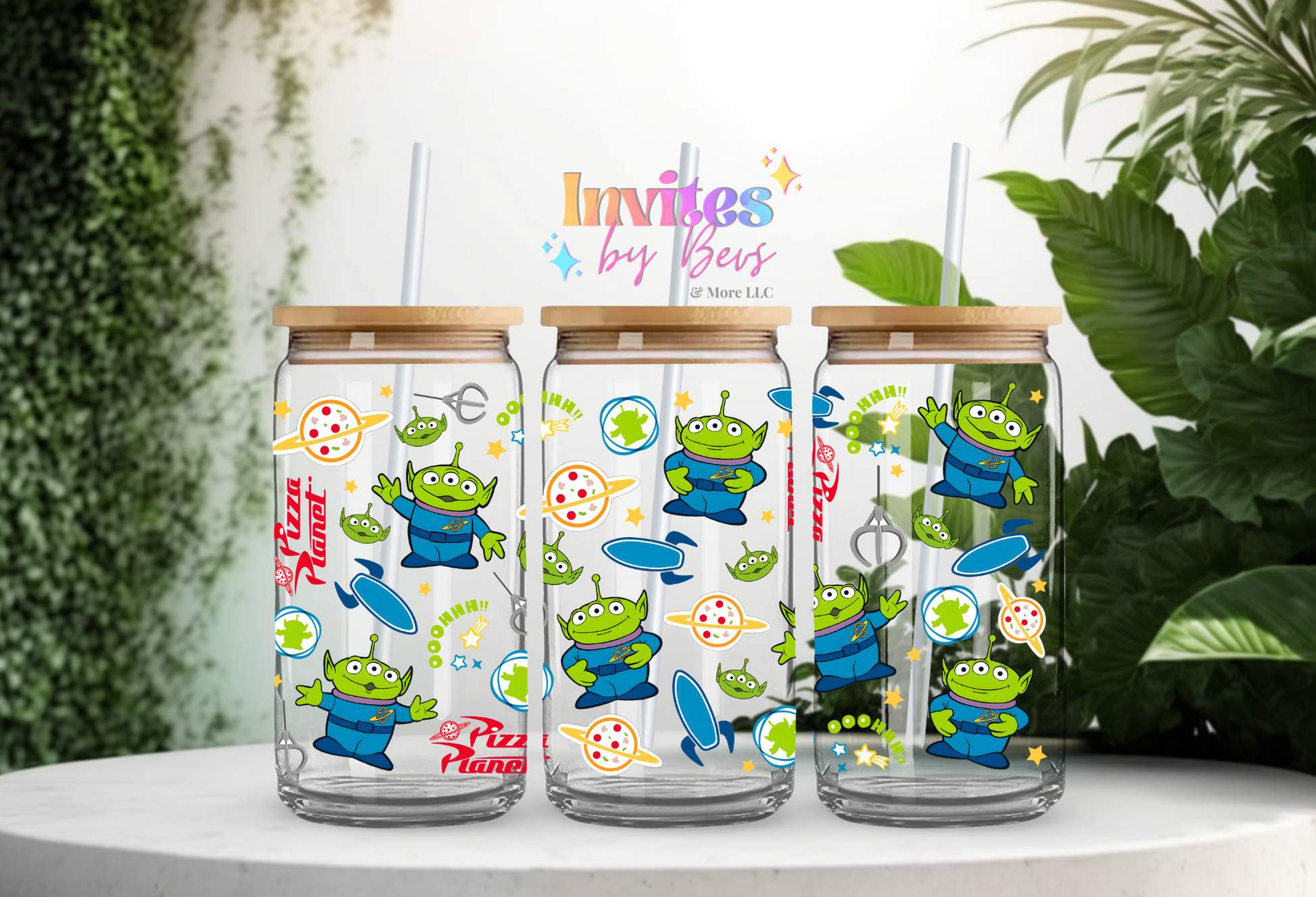 GREEN ALIENS PIZZA PLANET UV DTF CUP WRAP