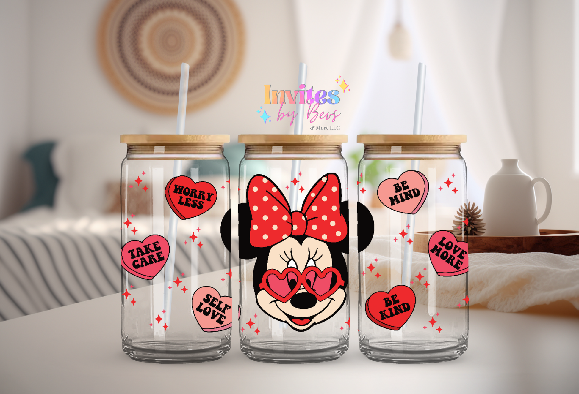 MINNIE MOUSE WITH CONVERSATIONAL HEARTS UV DTF CUP WRAP